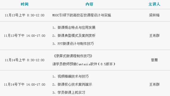 三、培训时间:11月13、14日(周五、周六),具体时间见日程安排。